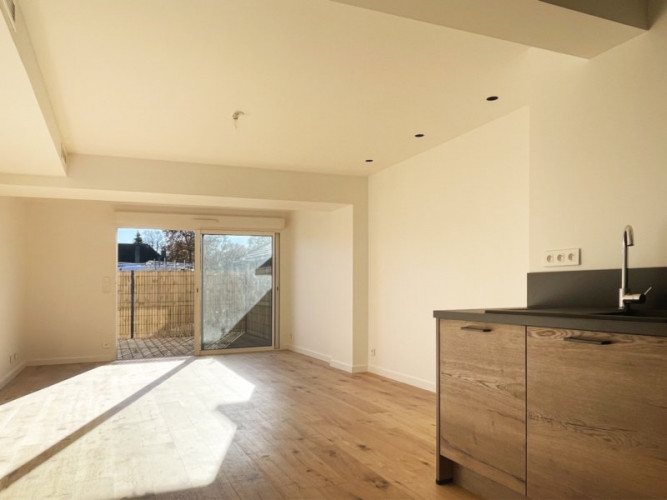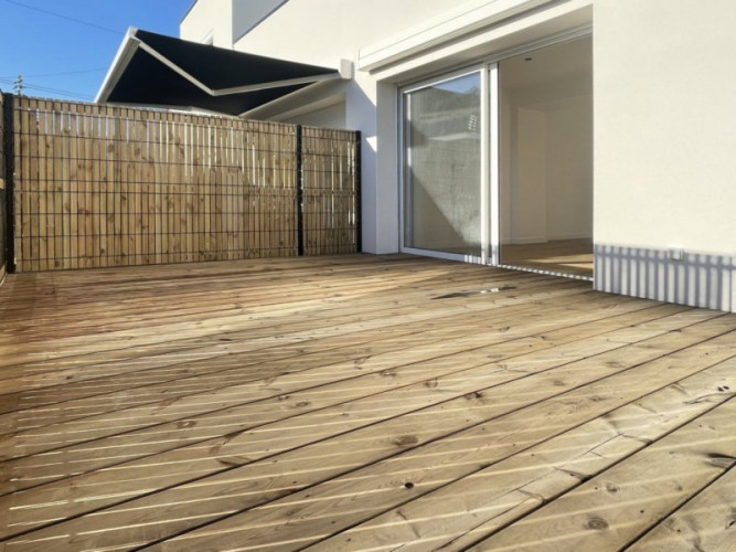 Les belles prestations de ce logement se pousuivent à l'exterieur. En effet, passée la grande baie-vitrée du salon, nous arrivons sur une terrasse et un grand jardin de 200m2, sans vis-à-vis !