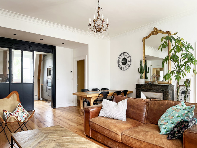 À proximité du quartier Saint Joseph, ce très beau T4 au deuxième étage d'une maison de maître du 18ème siècle, ravira les inconditionnels de la vie citadine. D'une superficie au sol de 194m2 dont 117m2 carrez, il se compose de pièces spacieuses, de hauts plafonds avec corniches et d'une décoration élégante qui met en valeur le patrimoine historique de cette bâtisse. Le volume de la pièce de vie vous permet de bénéficier d'un espace salon et d'une salle-à-manger avec cheminée. La cuisine récemment rénovée avec des matériaux de bonne facture vient en prolongement de ce lieu grâce à sa verrière. Le coin nuit offre trois chambres spacieuses et lumineuses. La salle de bains avec douche à l'talienne et baignoire sabot conviendront aux plus exigeants.
