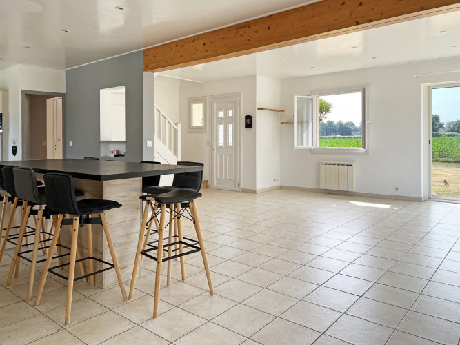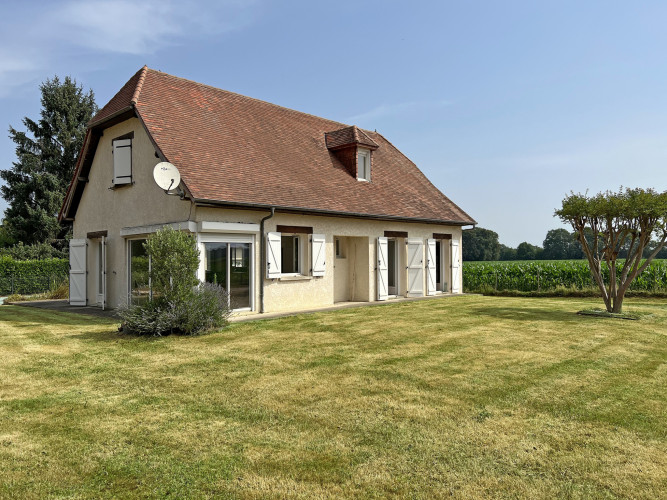 Dans une commune à 20 minutes de Pau, au Nord, nous vous invitons à découvrir cette belle maison familiale de 170 m2 habitable. Exposé sud, vous serez conquis par la luminosité de son espace de vie qui bénéficie de nombreuses baies vitrées. Également au rez-de-chaussée, son coin nuit disposant de 3 chambres et d'une salle de bains conviendra parfaitement à votre petite famille. À l'étage, vous pourrez laisser libre court à votre imagination pour moderniser les deux chambres, sa salle d'eau et son WC. Ce niveau est d'autant plus idéal puisque vous pourrez créer une suite parentale et un coin bureau. En bref, cette maison vous offre de nombreuses possibilités d'aménagement ! Pour ce qui est de l'extérieur, le jardin plat de 1500m2 sans vis-à-vis ravira les amateurs de jardinage avec son potager !