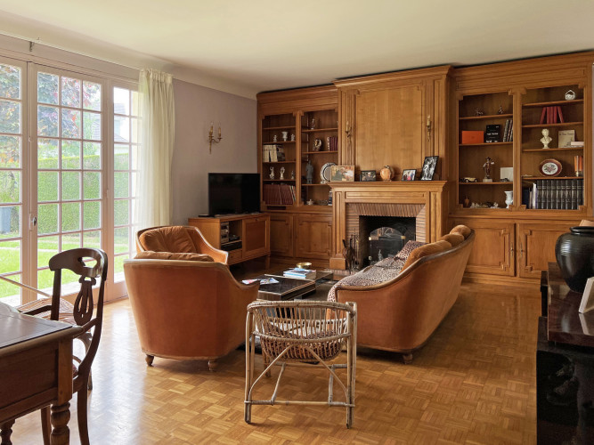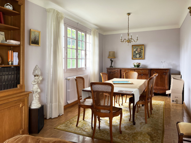 Dans un quartier calme et résidentiel, nous vous invitons à découvrir cette maison familiale de plain pied de 120 m2. Une grande entrée vous menera directement dans le séjour/salle à manger doté de belles ouvertures sur l'exterieur. La cuisine séparée pourra facilement s'ouvrir sur la salle à manger. Les matériaux de qualité et l'agencement de la maison séparant les pièces de vie des 3 chambres sera un excellent point de départ pour un projet de rénovation. Une salle de bain confortable avec douche et baignoire complète l'espace privatif de la maison. Le parquet mosaïque, la cheminée et les grandes ouvertures apportent cachet et luminosité à cette propriété.