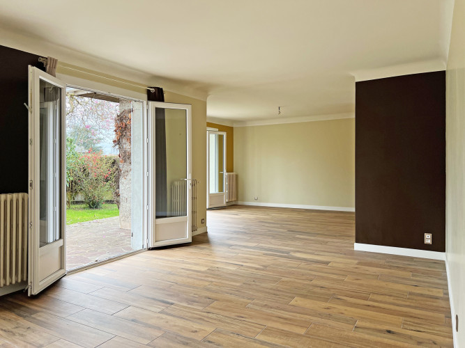 Dans un quartier résidentiel, nous vous invitons à découvrir cette belle maison de 172 m2 au style Île-de-France. L'optimisation de son agencement conviendrait idéalement à une famille en quête de beaux espaces. Verrière, carreaux de ciment, parquet ou encore cheminée vous charmeront au rez-de-chaussée. Judicieusement pensée, l'entrée sert de délimitation entre une cuisine séparée et une grande pièce de vie s'ouvrant sur l'extérieur. Sur ce même niveau, vous bénéficierez de deux chambres, une salle de bains et un WC. L'étage est tout autant fonctionnel ! Avec ses trois chambres, sa salle d'eau et son wc, vous disposerez de nombreux couchages. Dotée de grandes ouvertures, la maison est lumineuse et chaleureuse.