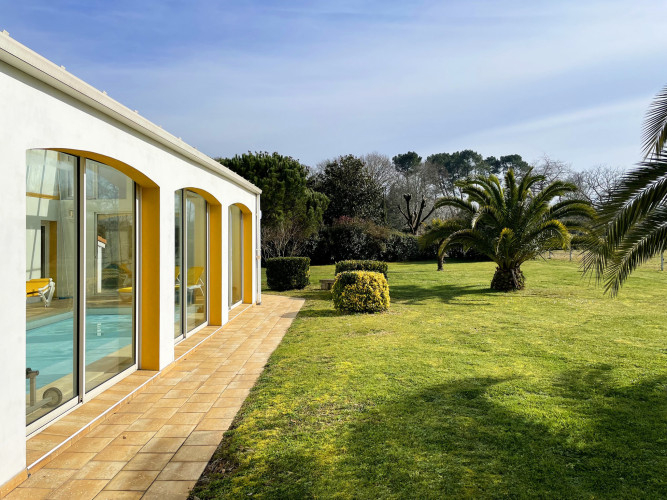 Dans un cadre bucolique, parcourez cette longue allée pour découvrir une belle villa d'une superficie habitable d'environ 270 m2. Vous profiterez d'une grande pièce de vie baignée de lumière ainsi que d'un jardin d'hiver avec vue nature et un accès direct à la piscine. Une cuisine séparée et équipée vous séduiera pour profiter d'agréable moment en famille. La partie nuit vous offrira deux chambres et deux suites parentales. Deux salles de bain supplémentaires viennent apporter davantage de confort. Une buanderie, deux bureaux ainsi qu'une mezzanine agrémentent ce bien d'exception. Un double garage et un carport viennent compléter les atouts de cette propriété.